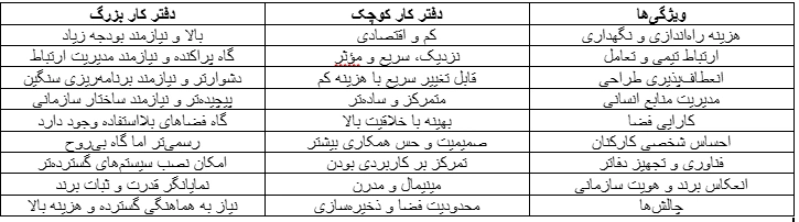 در جدول زیر، تحلیل دقیق مزایا و محدودیتهای هر نوع فضا ارائه شده است.